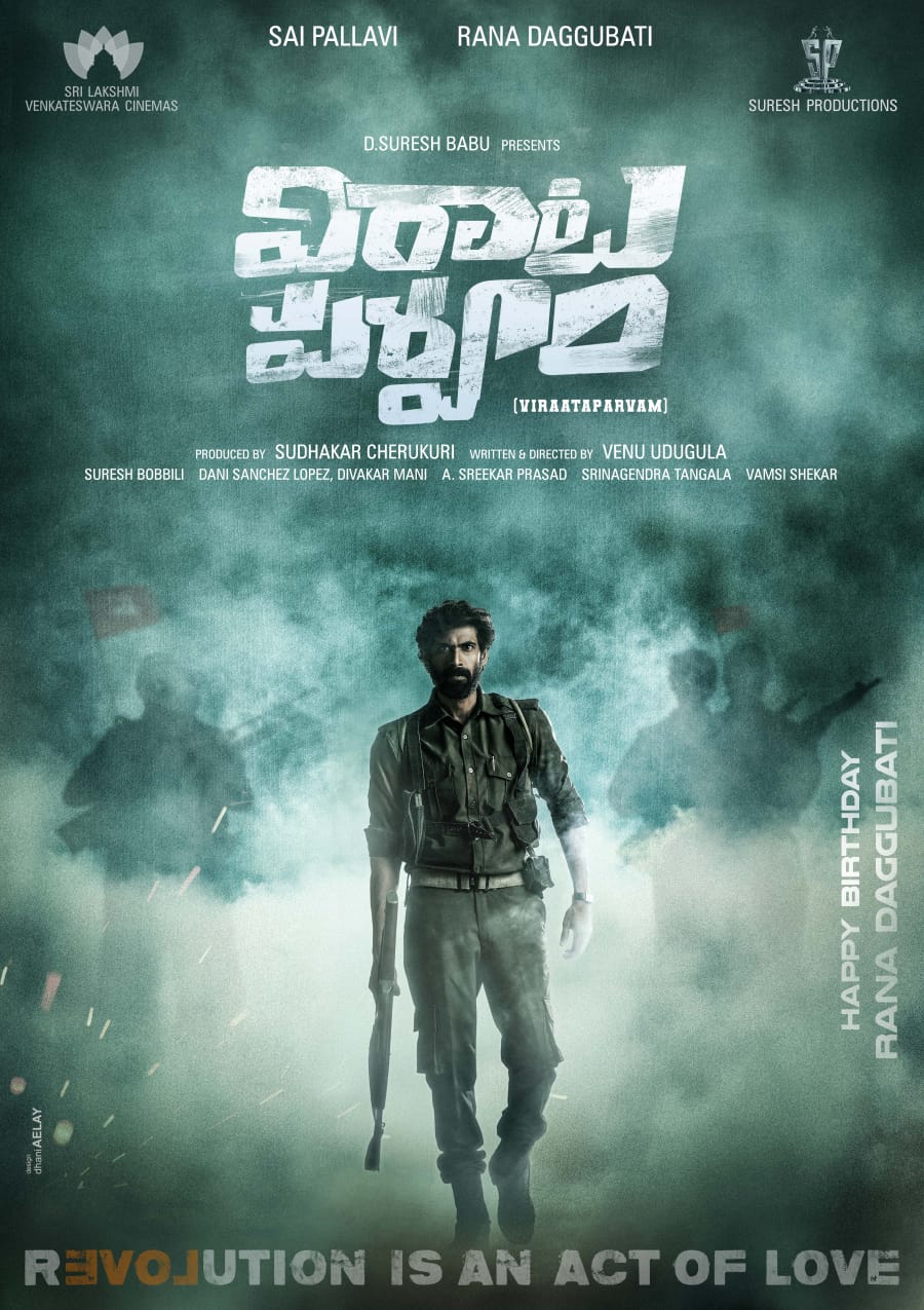 Unlike regular commercial cinema posters, we can see Sai Pallavi’s name first, then Rana’s name on the poster. Rana must be lauded for this gesture.