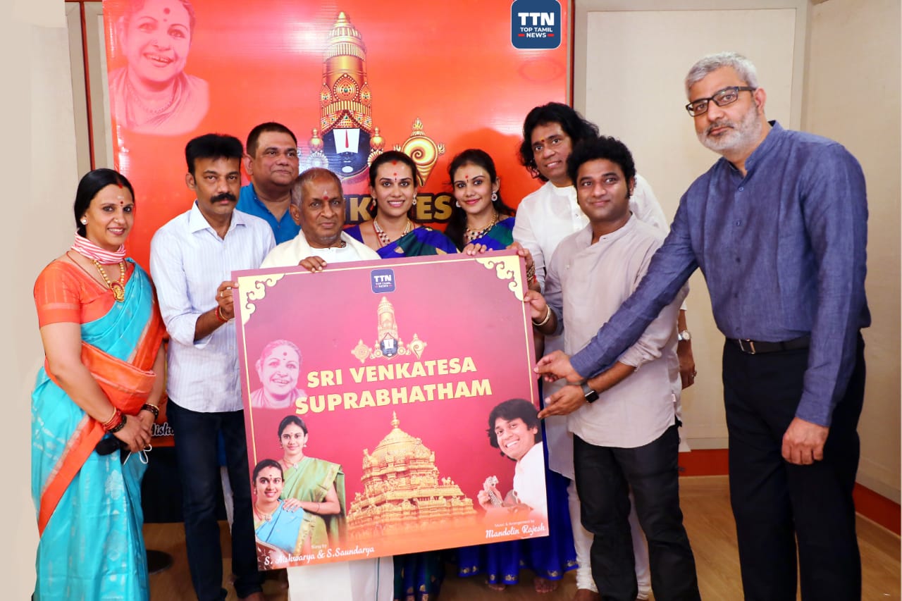 இசைஞானி இளையராஜா, ‘ஸ்ரீ வெங்கடேச சுப்ரபாதம்’ ஆல்பத்தை வெளியிட்டுள்ளார். இந்நிகழ்ச்சியில் இசையமைப்பாளர் தேவி ஸ்ரீ பிரசாத், மாண்டலின் ராஜேஷ், பாடகிகள் ஐஸ்வர்யா, சௌந்தர்யா உள்ளிட்ட பலர் கலந்து கொண்டனர்.