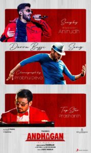 டாப்ஸ்டார் பிரஷாந்த் நடித்துவரும் அந்தகன் திரைப்படத்தை மிகுந்த பொருட்செலவில் ஏராளமான முன்னணி நடிகர்களுடன், தயாரித்து இயக்கி வருகிறார் நடிகரும், இயக்குனருமான தியாகராஜன். படம் முழுவதும் முடிந்த நிலையில் இறுதிகட்ட காட்சிக்காக “டோர்ரா புஜ்ஜி…” என்ற பாடலை ராக்ஸ்டார் அனிருத் மற்றும் மக்கள் செல்வன் விஜயசேதுபதி இணைந்து பாடியுள்ளனர். இந்த பாடலுக்கு நடனம் அமைத்து இயக்க நடனபுயல் பிரபுதேவா இசைந்துள்ளார். பிரஷாந்த், அனிருத், சிம்ரன், பிரியா ஆனந்த் மற்றும் 50 நடன கலைஞர்கள் ஆடும் இந்த பாடல் காட்சிக்காக பிரம்மாண்டமான அரங்கம் அமைக்கப்பட்டு வருகிறது. இந்த பாடல் காட்சி படமான உடனே அந்தகன் படத்தின் ஆடியோ ரிலீஸ் நடைபெற உள்ளது. அதை தொடர்ந்து மிகுந்த எதிர்பார்ப்பை ஏற்படுத்தி உள்ள அந்தகன் படத்தை கலைப்புலி S தாணு அவர்கள் உலகமெங்கும் திரையிட திட்டமிட்டு வருகிறார்.