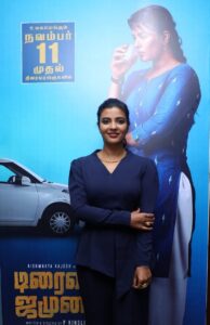 இயக்குநர் கின்ஸ்லின் கோவிட் தொற்றுக்கு முன்னர் என்னை சந்தித்து இப்படத்தின் கதையை விவரித்தார். அந்தத் தருணத்தில் கதையின் நாயகிக்கு முக்கியத்துவம் உள்ள கதைகளை தேர்ந்தெடுத்து நடிக்க வேண்டும் என்ற எண்ணத்தில் இல்லை. ஏனெனில் அது மிகுந்த பொறுப்புடன் கூடிய பணி. மேலும் அந்த தருணத்தில் ‘க / பெ ரணசிங்கம்’ படத்தை முடித்துவிட்டு, நல்ல நல்ல கதைகளை தேர்ந்தெடுத்து, மிக மெதுவாக திரைத்துறையில் பயணிக்கலாம் என திட்டமிட்டிருந்தேன். ஆனால் டிரைவர் ஜமுனா படத்தின் கதையைக் கேட்டு ஒரே நாளில் இந்தப்படத்தில் நடிக்கலாம் என தீர்மானித்தேன். என்னுடைய திரையுலக அனுபவத்தில் ஒரு கதையைக் கேட்டு உடனே நடிக்க ஒப்புக்கொண்ட திரைப்படம் இதுதான்.